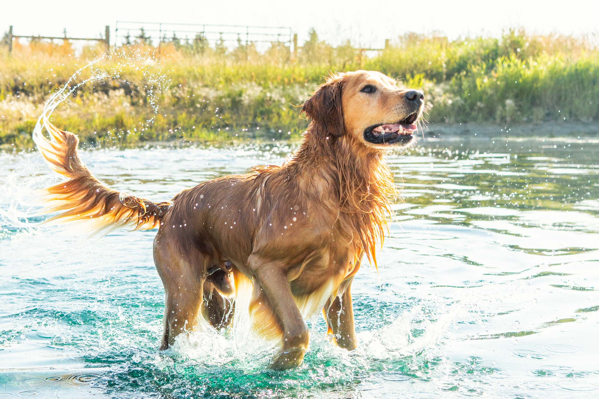 Field Goldens tend to be slimmer, more athletic, and lighter than their British show counterparts. Their coats often carry deeper, richer color blends, and when kept in trim, males usually range from 65–75 lbs and females from 50–65 lbs. They are bred with intelligence, energy, and companionship in mind, making them excellent partners for outdoor adventures as well as loyal family pets.